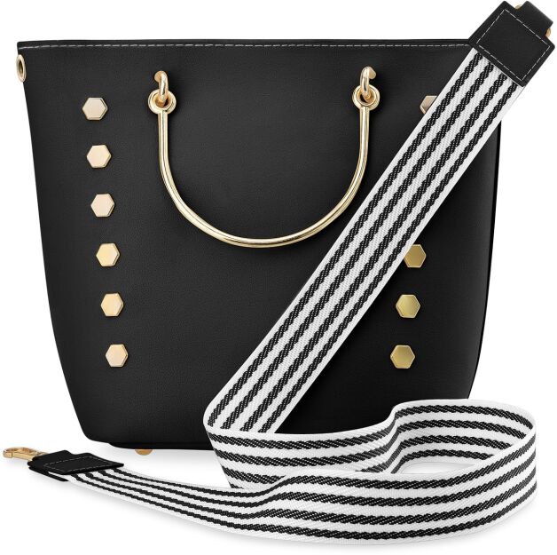 Měkký dámský kufřík kabelka se zdobeným úchytem a pásem – černý